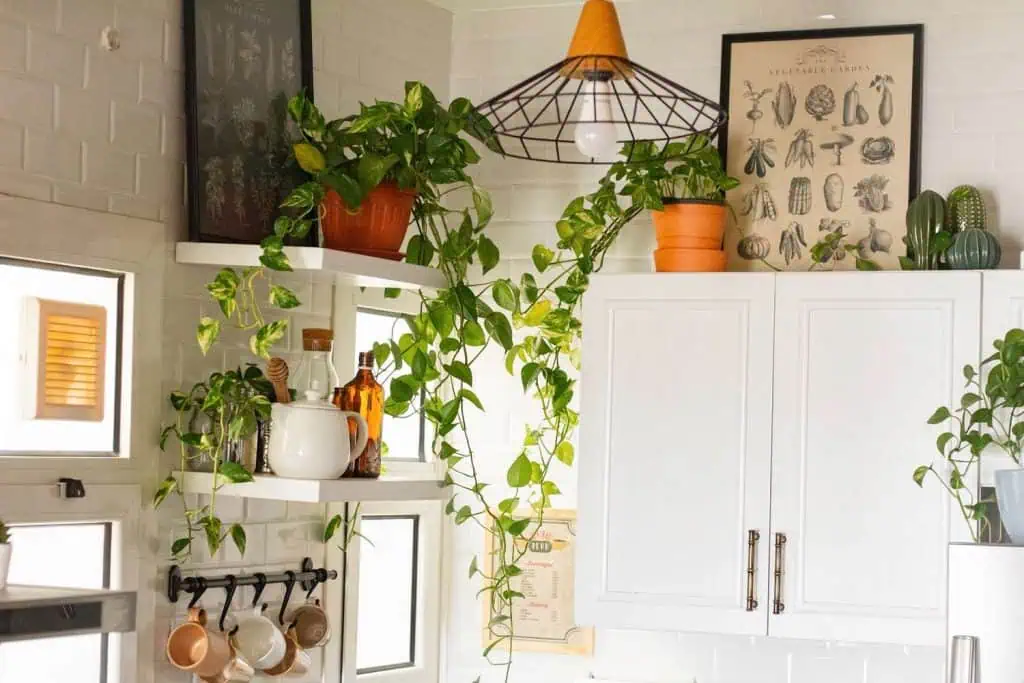 Plants breathe life into every room, especially the kitchen. A few potted herbs, trailing ivy, or a vase of seasonal flowers add natural texture and color. Greenery softens hard lines, improves air quality, and makes even the simplest space feel more curated and alive.