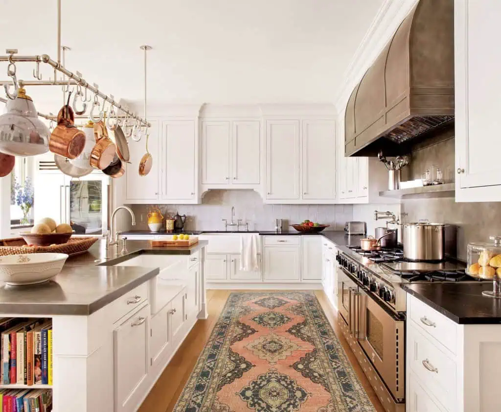 A patterned rug or runner brings warmth and softness to a kitchen’s hard surfaces. Choose washable materials in muted tones or vintage patterns for charm and durability. It’s a simple accent that adds comfort, color, and personality even to rental spaces.