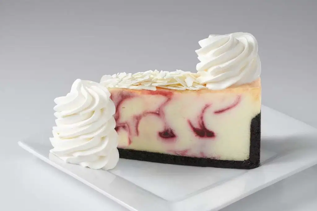 This cheesecake strikes a more balanced note with its swirl of tart raspberry cutting through smooth white chocolate filling. The fruity ribbon adds brightness and keeps the sweetness from becoming overpowering. Visually stunning and layered in flavor, it feels refined compared to heavier chocolate options.