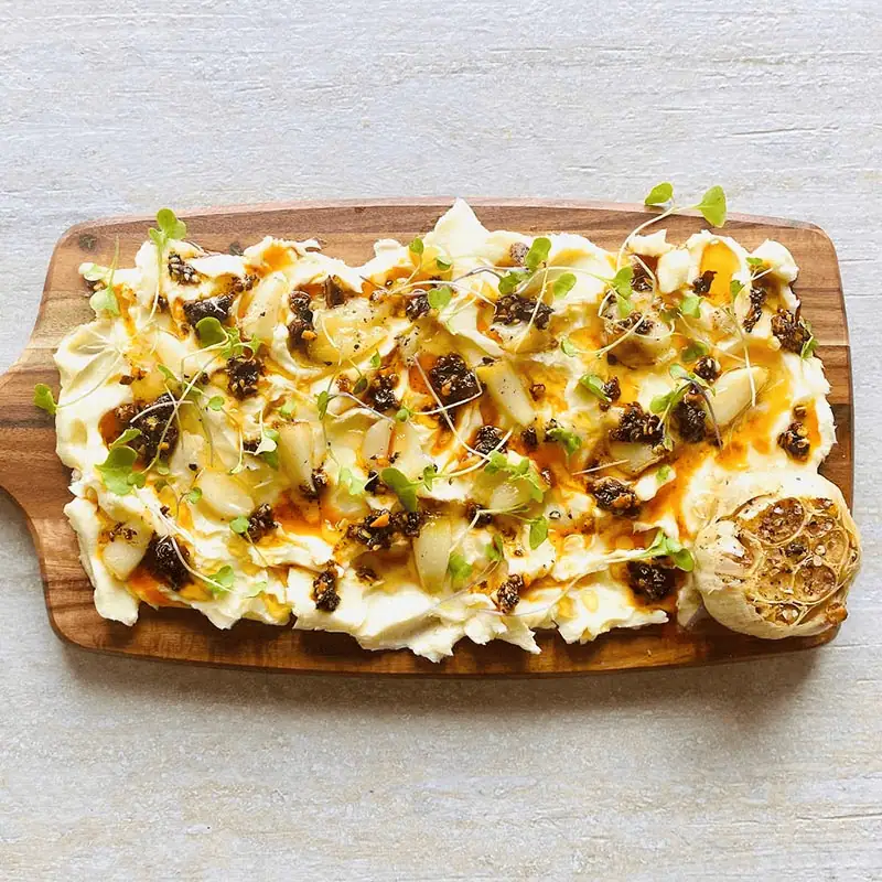 Butter boards gained viral attention for their communal indulgence and visual appeal, inspiring fine-dining dessert interpretations focused on shared luxury. Instead of butter, chefs present whipped cultured creams, ganache, or mascarpone spreads arranged with fruits, nuts, and edible flowers. Paired with house-baked breads or pastry shards, the dish emphasizes abundance without excess. The fine-dining version retains the tactile pleasure and visual drama of the original trend while introducing refined sweetness and intentional composition.