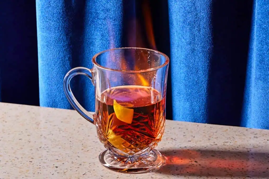 The Blue Blazer is known for its dramatic presentation and warming power. Begin by heating water and mixing scotch with sugar in a heatproof mug. Light the mixture carefully with a match, and pour the flaming liquid between two mugs, creating an arching stream. This process not only showcases skill but also enhances the blend of flavors, adding a caramelized depth. Serve immediately in a pedestal glass, taking care to emphasize the bold and warming essence of this spirited concoction.