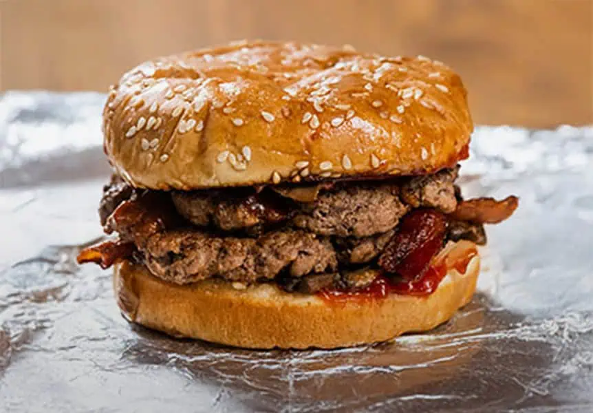 Barbecue sauce, onion rings, bacon, and melted cheese it’s the ultimate messy indulgence. The Western Bacon Cheeseburger is sweet, smoky, and unapologetically over the top, a perfect way to end your burger bucket list before the year’s done.
