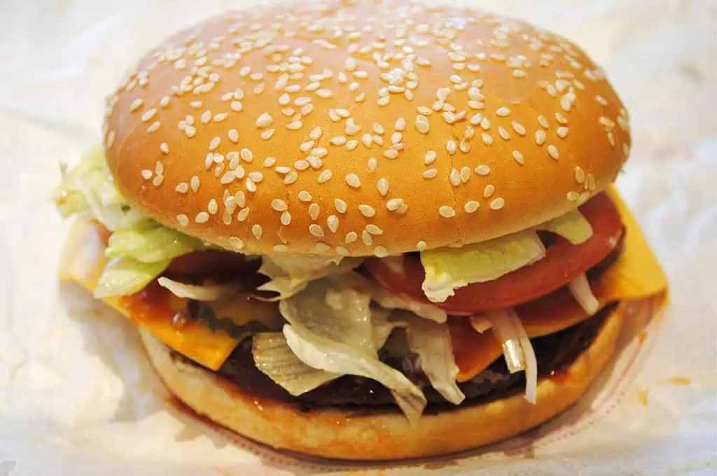 Burger King's Whopper showcases a balance of flame-grilled beef, juicy and charred to perfection. Its generous size means each bite delivers a mix of toppings: crisp lettuce, ripe tomatoes, tangy pickles, and sliced onions. The addition of mayonnaise and ketchup enhances its zest, while the sesame seed bun provides a soft contrast. The flame-grilling technique ensures a smoky depth, making it particularly satisfying. Emphasize even patty cooking to maintain juiciness, ensuring a well-constructed burger experience.