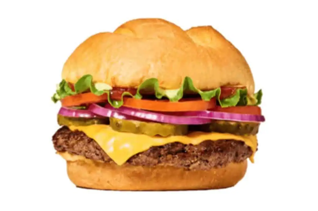 Five Guys’ cheeseburger is notable for its customizability and generous portions. Made from hand-formed patties, the beef is seasoned and grilled to order, ensuring a satisfying bite every time. What sets it apart is the range of free toppings, from sautéed mushrooms to jalapeños, allowing for a personalized culinary experience. The two slices of American cheese melt seamlessly between the patties, adding a creamy richness. A lightly toasted sesame bun rounds it out, providing a soft yet sturdy touch.