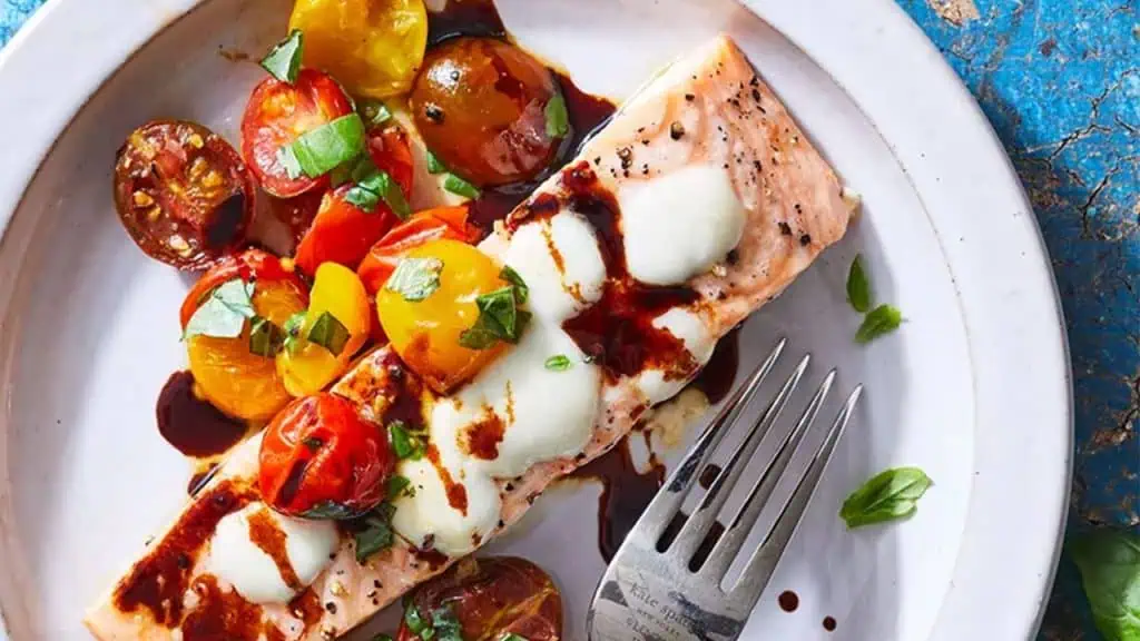 Roasted Salmon Caprese Delight, Photo Credits : eatingwell