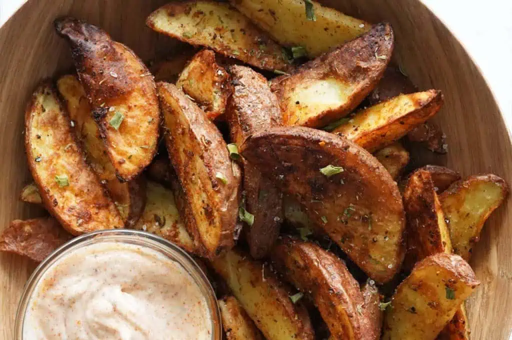 Use medium-sized red potatoes, known for their flavorful skin and creamy interior. Cut into even wedges for consistent cooking. Toss with a blend of olive oil, paprika, cayenne, garlic powder, onion powder, salt, and freshly cracked black pepper, ensuring each piece is well coated. Arrange in a single layer on a baking sheet and roast at 425°F until golden and crisp. Rotate halfway through for even browning. These wedges offer a satisfying heat and spice, perfect as a standalone snack or paired with cooling dips.