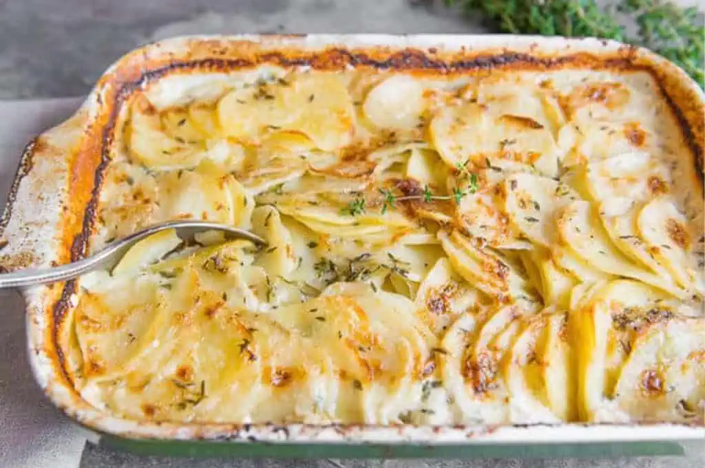 Opt for Russet or Yukon Gold potatoes for their balance of creaminess and structure. Thinly slice them, ensuring even thickness for uniform cooking. Layer the slices with a blend of sharp cheddar and Gruyère, providing both richness and a hint of sharpness. Pour a seasoned milk mixture over the layers to infuse with moistness. Bake at 350°F until bubbly and browned. Rest before slicing, allowing flavors to meld, resulting in a comforting, savory side that delights with each creamy forkful.