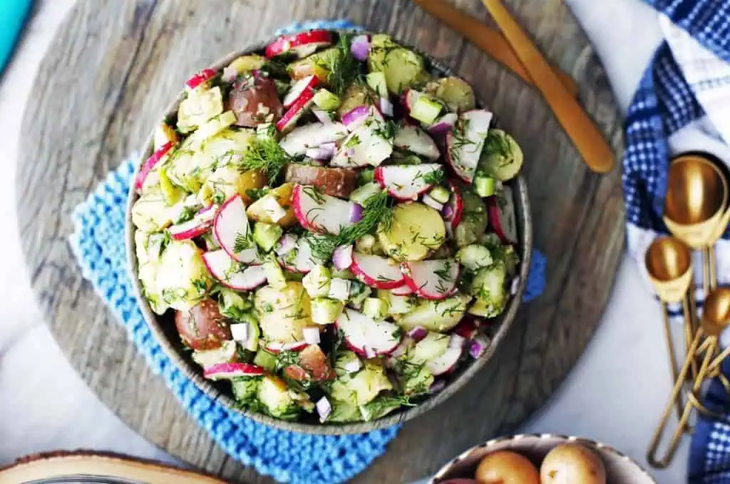 For a refreshing potato salad, use waxy potatoes like fingerlings or red potatoes for their ability to hold shape. Boil until fork-tender, then cool slightly before slicing. Prepare the dressing by whisking olive oil, Dijon mustard, and apple cider vinegar until emulsified. Toss potatoes with the dressing, adding freshly chopped dill for its bright, aromatic kick. Include thinly sliced scallions and a pinch of salt and pepper to enhance flavors. Serve chilled or at room temperature for a versatile side dish that pairs well with grilled meats or sandwiches.