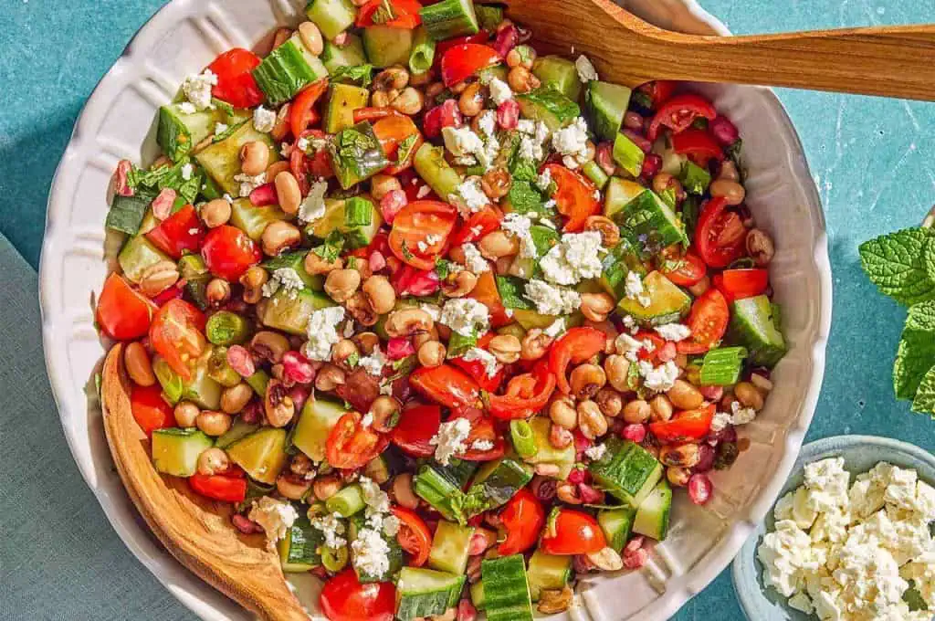 This dish highlights the hearty nature of black-eyed peas draped in fresh, vibrant flavors. Rinse canned black-eyed peas and combine with diced tomatoes, cucumbers, and red onion. Add finely chopped mint and parsley for invigorating herbal notes. Dress with olive oil, lemon juice, salt, and freshly cracked pepper. For optimal results, let the salad rest in the fridge for an hour, allowing the flavors to meld beautifully. This salad makes a revitalizing side dish or light lunch, bursting with color and taste.