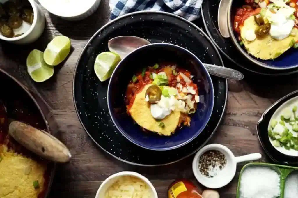 Brown onions and garlic before adding ground cumin and chili powder, bringing out their aromas. Stir in canned tomatoes, kidney, pinto, and black beans, creating a flavorful blend. Simmer with vegetable broth to develop depth. While the chili cooks, bake a cornbread with a touch of honey and butter for sweetness. When serving, garnish with fresh cilantro or scallions. This chili, paired with warm cornbread, offers a comforting, filling meal perfect for any season.