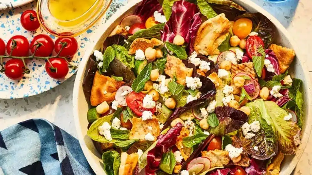 A zesty lemony chopped salad is both invigorating and satisfying. Begin with crisp romaine, adding cucumbers, tomatoes, and red onions for a fresh base. Generously squeeze lemon juice and drizzle olive oil for a bright dressing with a hint of zest. Crumble feta cheese over the top, incorporating a creamy and tangy element. Serve alongside warm, toasted pita wedges, providing a satisfying crunch that complements the salad's freshness. This dish is balanced, energetic, and exceptionally suited for a light summer supper.