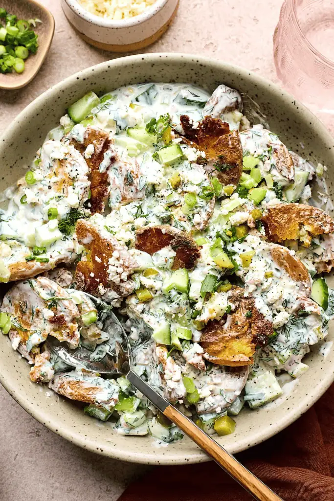 Crispy Smashed Potatoes with Scallion Yogurt