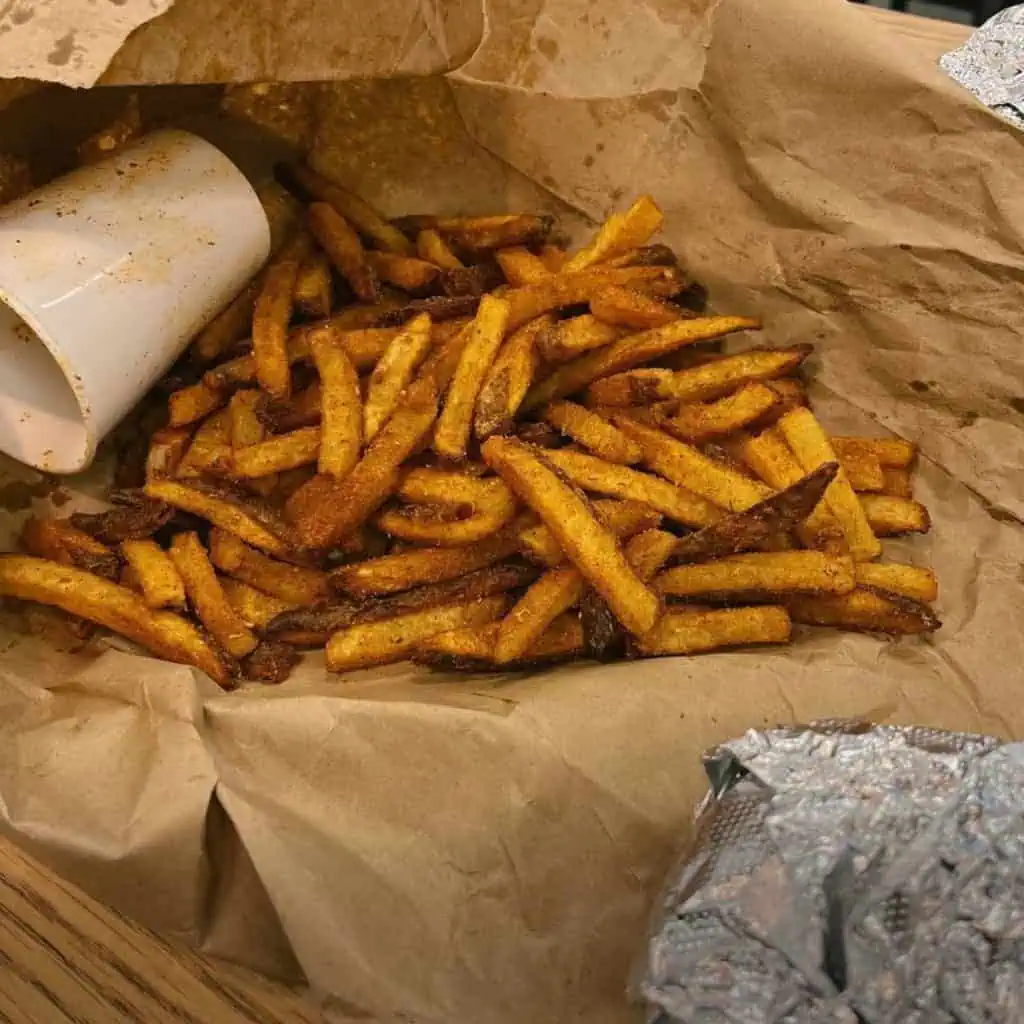 Five Guys takes a straightforward approach with their fresh-cut fries, prioritizing simplicity and freshness. Potatoes are sliced daily and cooked in peanut oil, which provides a nutty richness and crisp texture. The preparation avoids freezing, ensuring a natural flavor profile. Generously salted, each batch maintains an ideal balance between crispness and fluffiness, often served in a heaping scoop that enhances their indulgent appeal.