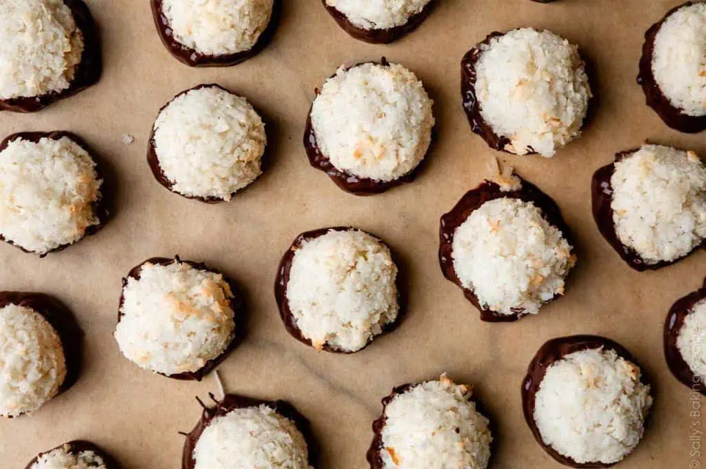 Use a small scoop to portion on a lined baking sheet. Bake until golden brown, about 25 minutes. The macaroons should have crispy edges while remaining chewy inside, highlighting the natural sweetness of the coconut.