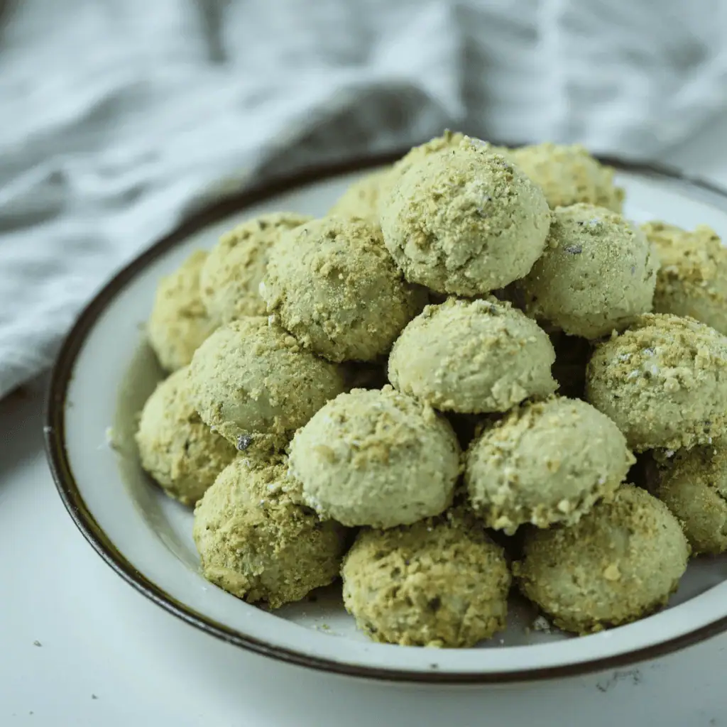 Pistachio snowball cookies are especially popular during the winter holidays because their powdered sugar coating resembles fresh snow. The addition of ground pistachios gives the cookies a nutty richness and festive color inside. They’re tender, crumbly, and melt in the mouth. These cookies are often chosen because they’re forgiving to bake and easy to store. They feel cozy, nostalgic, and perfectly seasonal.