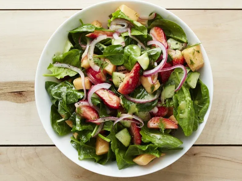 This salad harmonizes ripe strawberries, crisp cucumbers, and sweet melon for a refreshing summer dish. Begin by slicing strawberries and a ripe melon, such as cantaloupe, into bite-sized pieces. Thinly slice seedless cucumbers for a refreshing crunch. Combine the ingredients in a large bowl, and toss them gently with fresh lime juice and a touch of honey for sweetness. Garnish with fresh mint leaves to add a hint of herbal brightness. This medley is perfect for balancing savory BBQ flavors with its natural sweetness and vibrant textures.