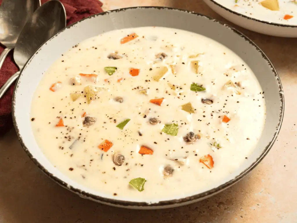Cream of mushroom soup remains popular during winter for its earthy flavor and smooth consistency. Americans rely on it both as a standalone soup and as a base for casseroles and sauces. Its richness makes it feel comforting, while mushrooms add depth without requiring meat. During cold months, it’s valued for versatility and ease. The soup’s familiar taste keeps it in regular rotation when comfort cooking takes priority.