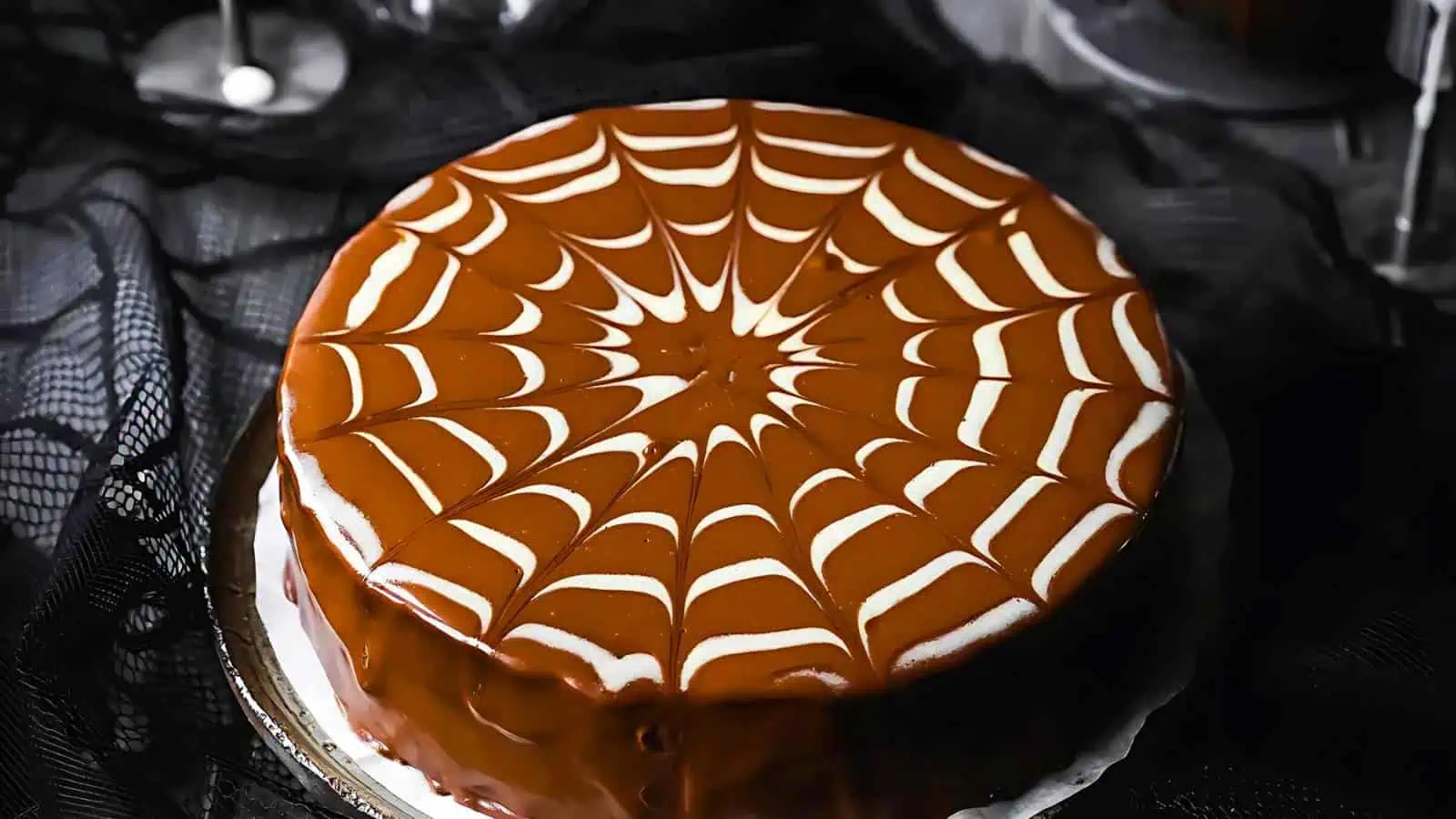 This Halloween Ghost Cake is the ultimate treat for any spooky celebration. With layers of vanilla and chocolate cake covered in black buttercream, itโs topped with marshmallow spiderwebs and cute buttercream ghosts. Itโs a fun addition to your lineup of spooky Halloween cakes.