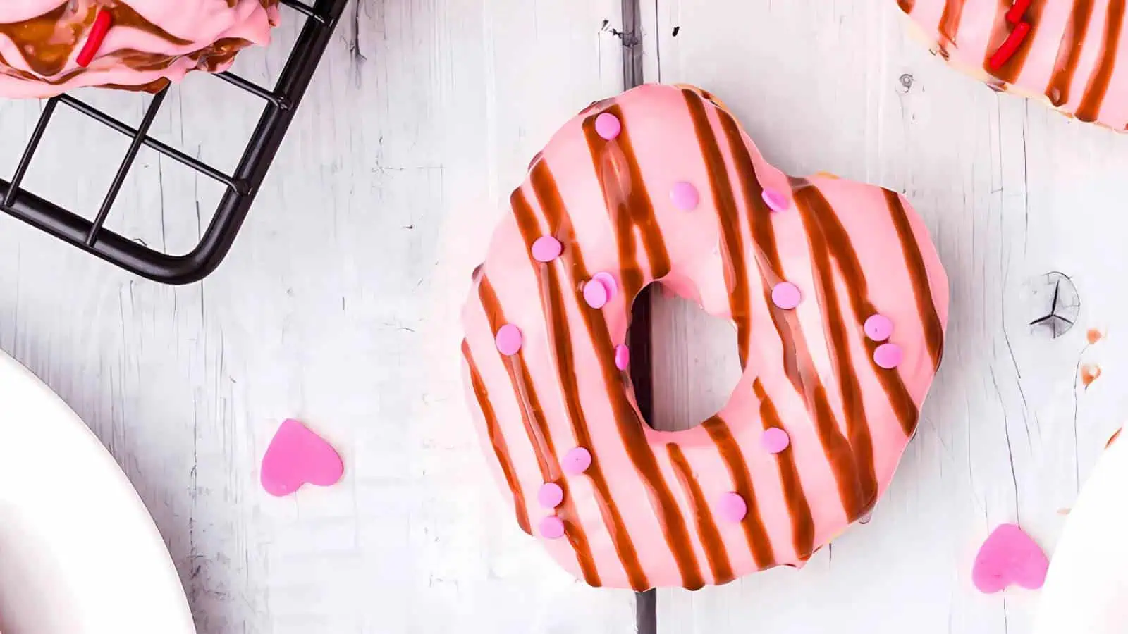 Heart-shaped air fryer biscuit donuts are a fun and simple option for Valentines Day Breakfast recipes. Iced and sprinkled, they’re a hit with kids and adults alike.