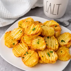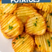 These crunchy, crispy, flavorful air fryer accordion potatoes are the perfect side dish for any meal. They cook super fast and only need 4 ingredients!