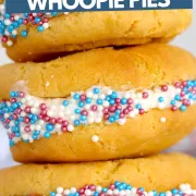 These Air Fryer Sugar Cookie Whoopie Pies are soft and tender with a sweet buttercream filling and rolled in colorful sprinkles! These sugar cookie whoopie pies combine my love for sugar cookies and cake-like whoopie pies. I mean, why choose if you don’t have to, right?!