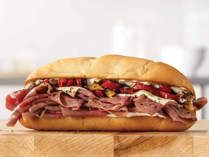 This slow-smoked brisket sandwich is layered with gouda cheese, crispy onions, barbecue sauce, and mayo. The smoky, tender beef combined with sweet and savory toppings creates one of Arby’s most flavorful sandwiches. It’s indulgent and unique, making it a customer favorite.