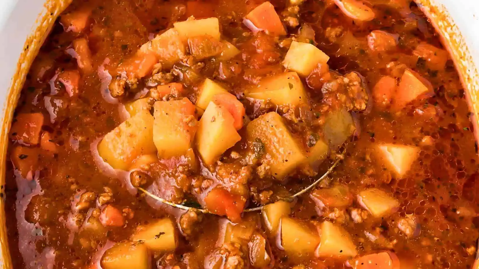 Poor Manโs Stew is a budget-friendly addition to your back-to-school slow cooker recipes. With savory ground beef, tender potatoes, and carrots in a rich tomato broth, this stew is both hearty and easy to make. Itโs perfect for those chilly school nights when you want something warm and comforting on the table without breaking the bank.