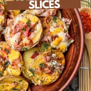 These Baked potato slices are the perfect family side dish. I mean, who doesnโt LOVE a loaded-up baked potato? And, if youโre like me, you love when your potatoes get those golden, crispy edges. These sliced baked potatoes have the perfect crunch while being full of cheesy bacon flavor!