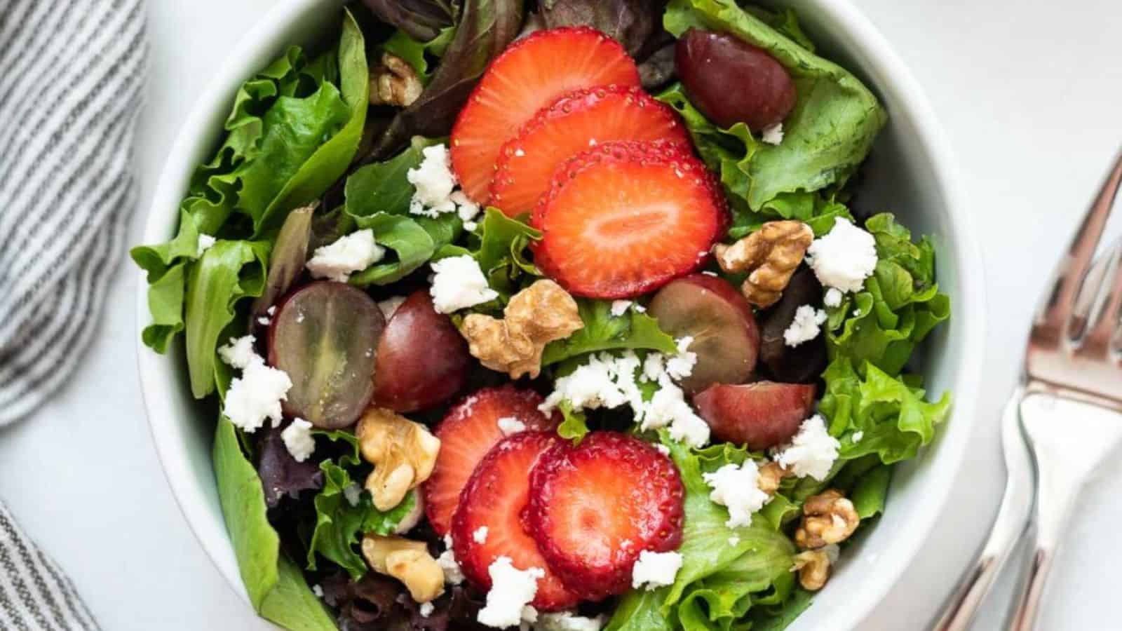 This mix of strawberries, grapes, feta, and toasted walnuts adds flavor and crunch. The balsamic dressing brings just the right amount of tang. It’s quick to throw together and works well for any summer lunch or dinner. You can also pack it for work or school.