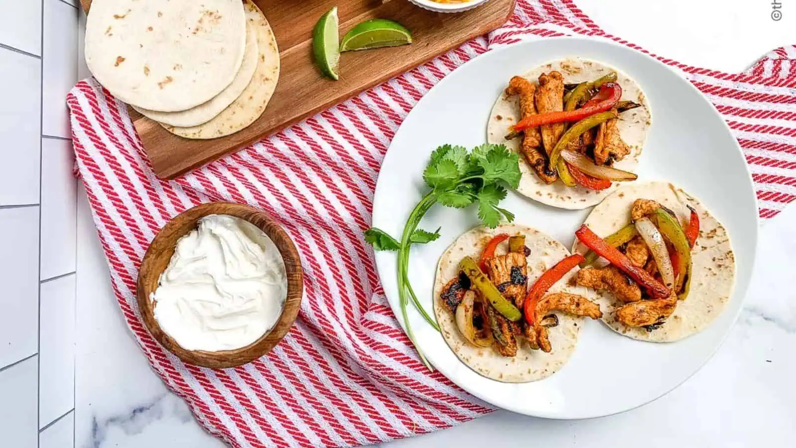Blackstone Chicken Tacos + Chipotle Lime Sauce. Photo credit: The Wooden Skillet.