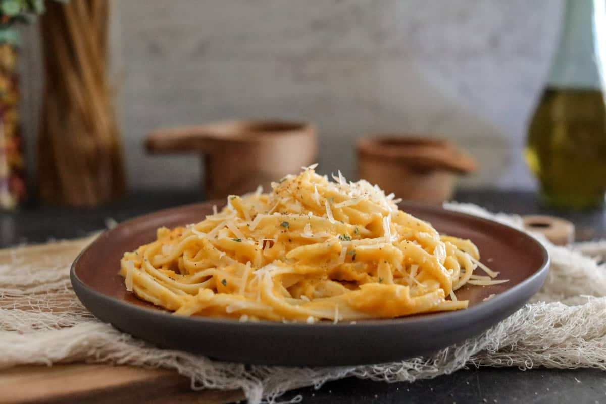 You can serve this Butternut Squash Alfredo sauce over fettuccine, and you’ll have a simple new recipe to add to your family dinner repertoire! (Plus, you’ll sneak in some veggies, and the kids won’t even mind!)