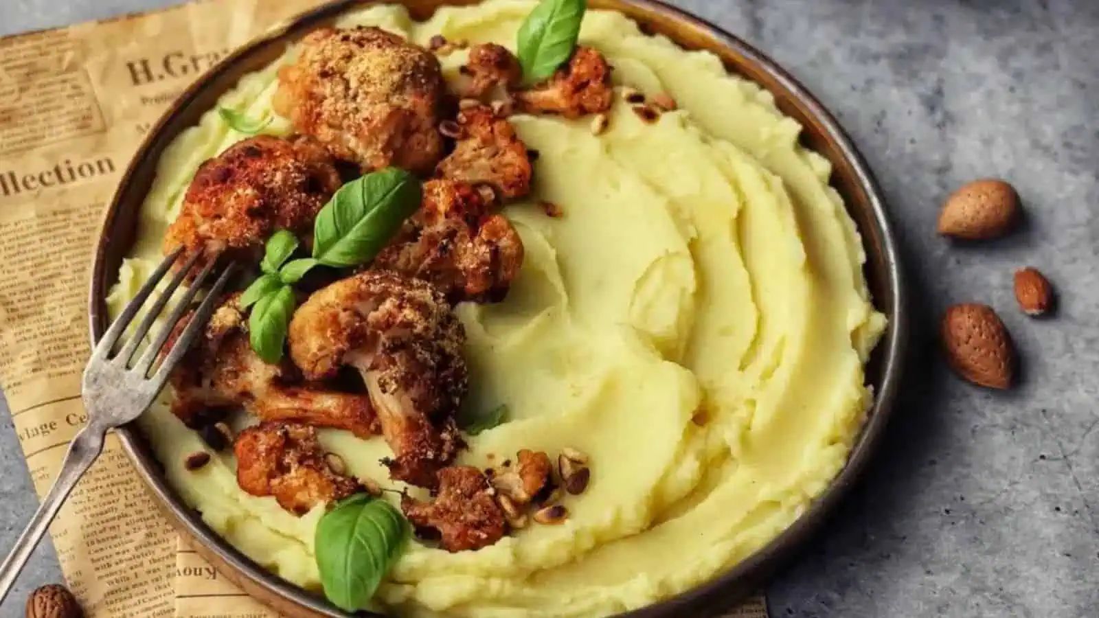 Get the Recipe: Roasted Cauliflower with Mashed Potatoes & Garlic Roasted Tomatoes
