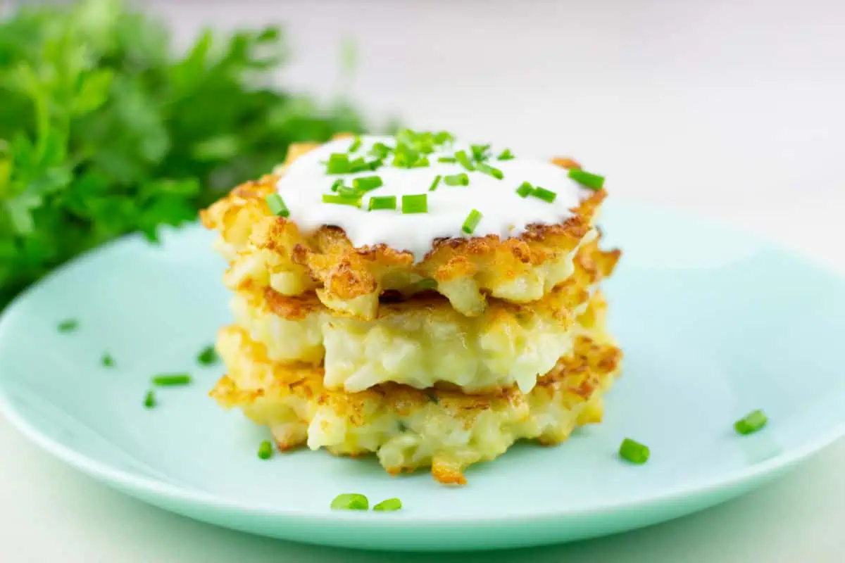 If you’re having these as a snack, you can pair them up with sour cream, yogurt and cucumber dip, cilantro jalapeño sauce, plain yogurt, or any other sauce of your choice. But, if you’re serving cauliflower fritters as a side dish, you can serve them with fish, roast beef, roast chicken, mashed potatoes, or any salad. In short, it can go well with almost everything!