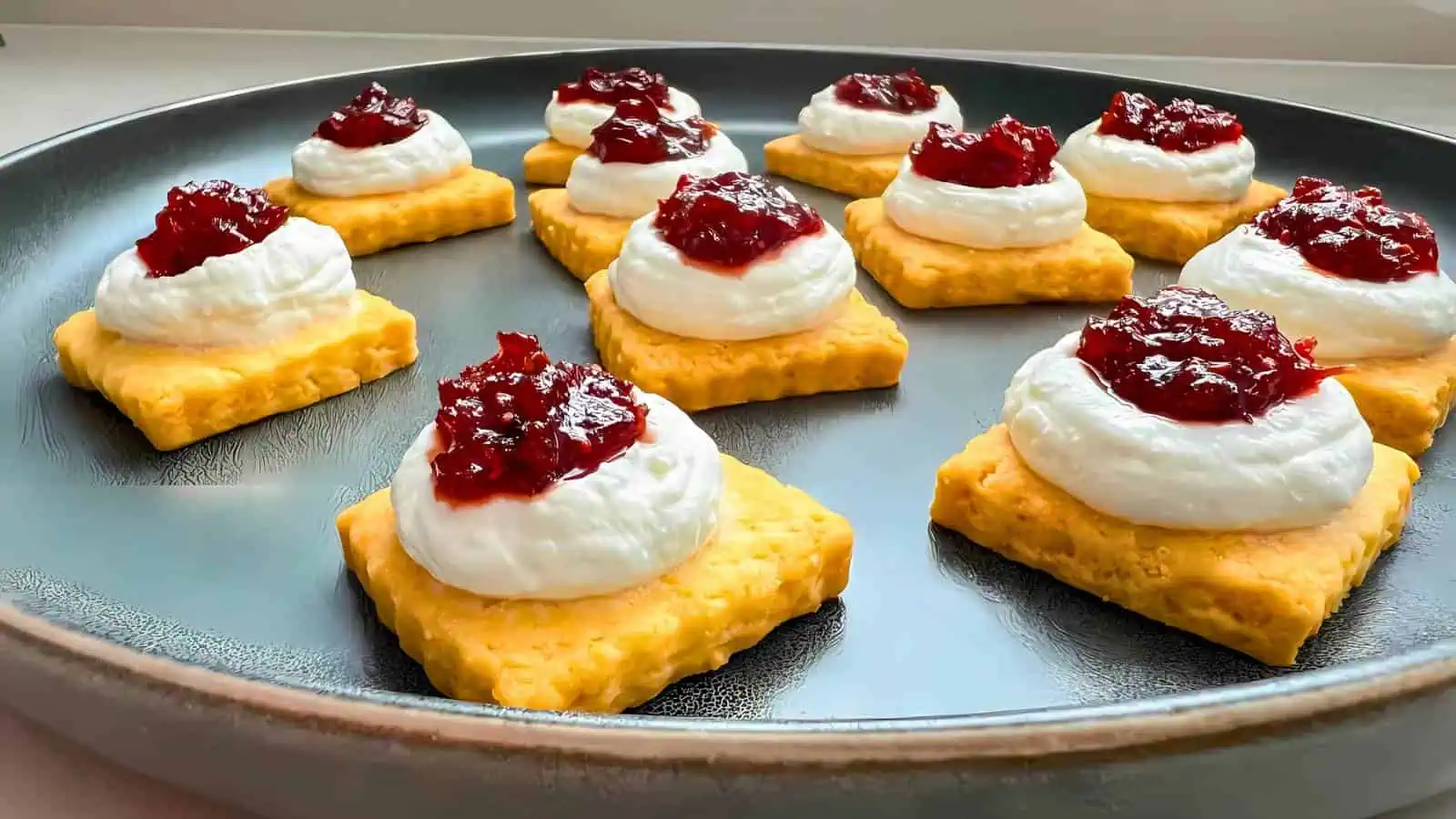 These shortbread bites are an elegant addition to cheesy appetizers. The buttery thyme-infused base pairs perfectly with creamy feta and sweet cranberry. Serve them at festive occasions to impress your guests with minimal effort.