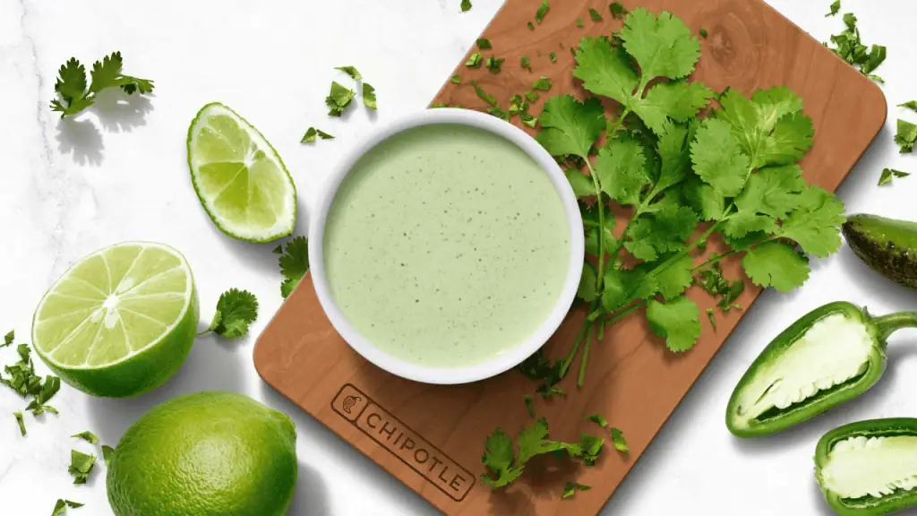 True to the brand’s “Food with Integrity” philosophy, the Cilantro Lime Sauce is made fresh daily in every restaurant without artificial colors or preservatives. The base is a creamy blend of sour cream, hand-chopped cilantro, and vibrant lime juice. It is balanced with savory Mexican spices and hand-roasted jalapeños, which provide a subtle, smoky kick rather than overwhelming heat.