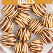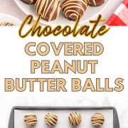 Chocolate Covered Peanut Butter Balls consist of a creamy peanut butter center, coated in melted chocolate, and topped with a peanut butter drizzle. Enjoy them as sweet treats with your afternoon coffee or as bite-size dessert.