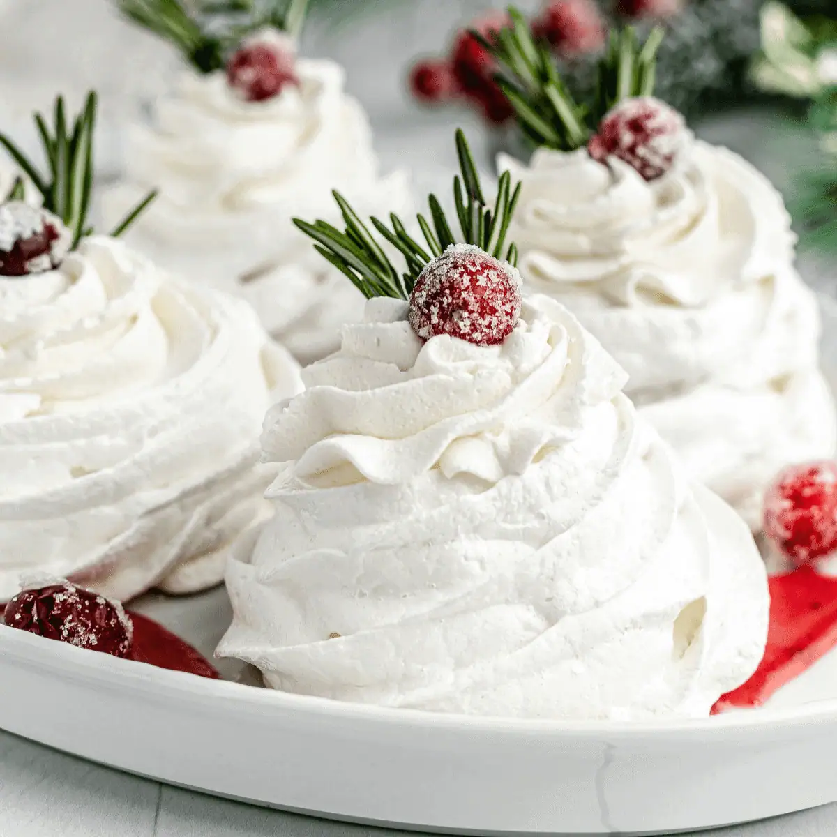 - Extend your creativity to garnish Christmas Pavlova with other herbs such as basil or mint. Even seasonal flowers lightly dusted with powdered sugar for a frosty effect would be gorgeous.