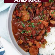 Red Beans and Rice is a traditional Louisiana creole dish with red beans and sausage mixed with vegetables and Cajun spices simmered and served over rice. It's definitely one of my most favorite recipes to make! It's literal food for the soul, and smells like home.