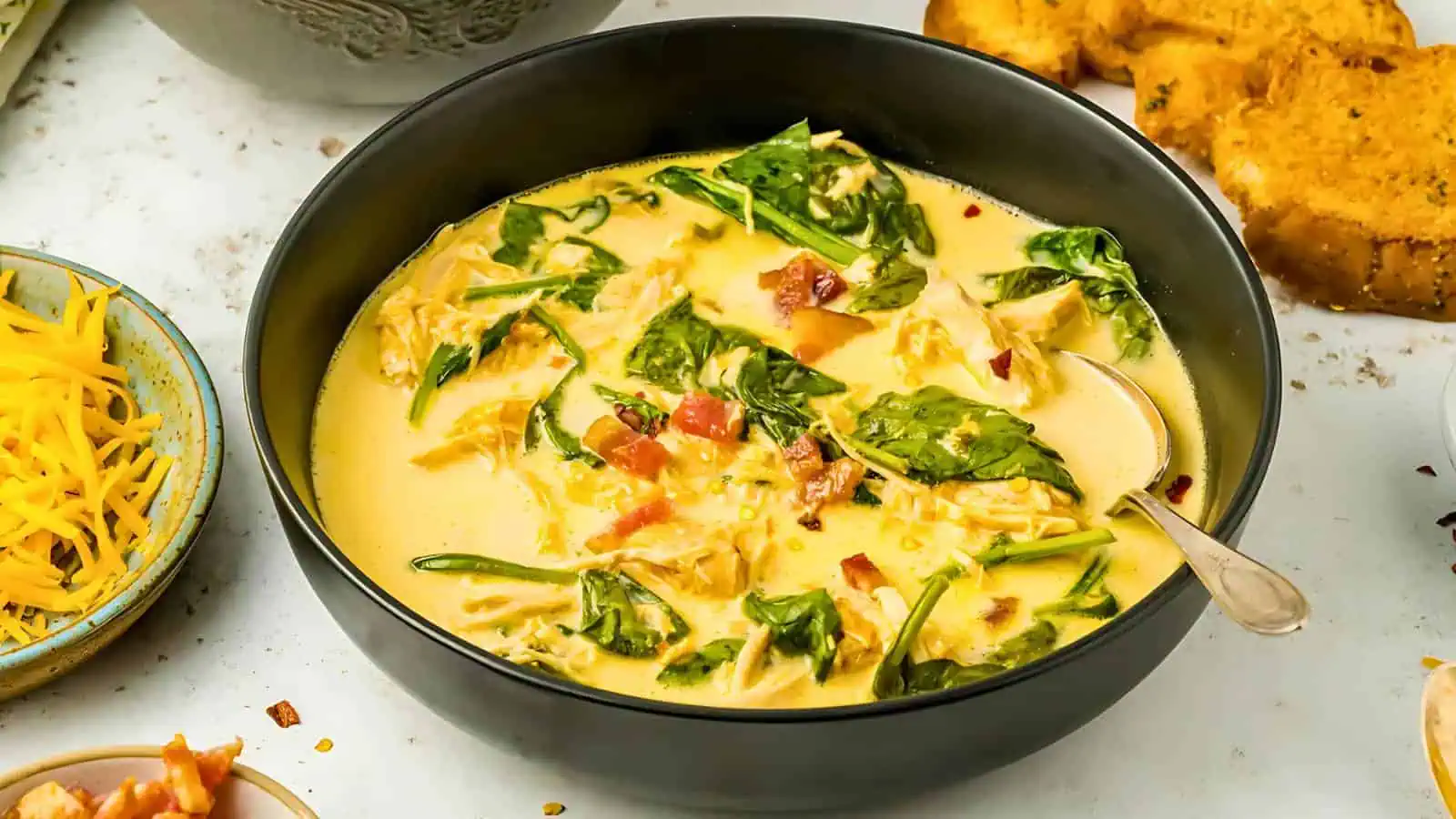 Creamy and full of flavor, this crock pot soup recipe combines tender chicken, cheddar cheese, and spinach for a dish that’s sure to please. It’s easy to throw together and perfect for those who love cheesy, hearty meals. Serve with crusty bread for extra comfort.