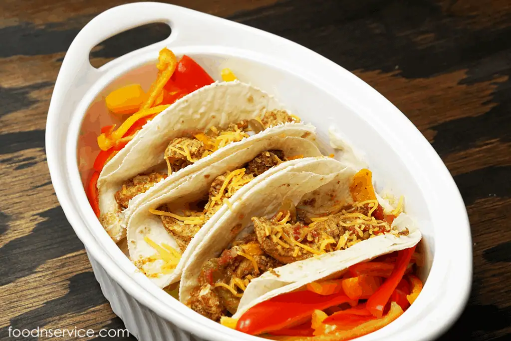 - Use a slotted spoon to scoop fajita mixture into tortillas.