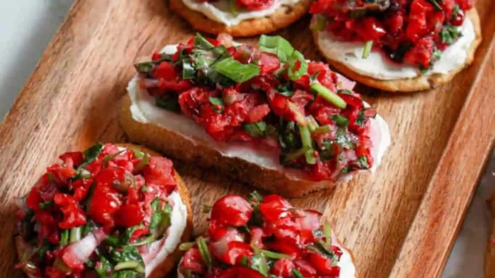 Sun-dried tomatoes, herbs, and garlic come together in this simple bruschetta. It’s quick to prepare and doesn’t need much to taste good. Serve it on toasted bread for an easy way to add color to your spread. Great choice when you need something last minute.