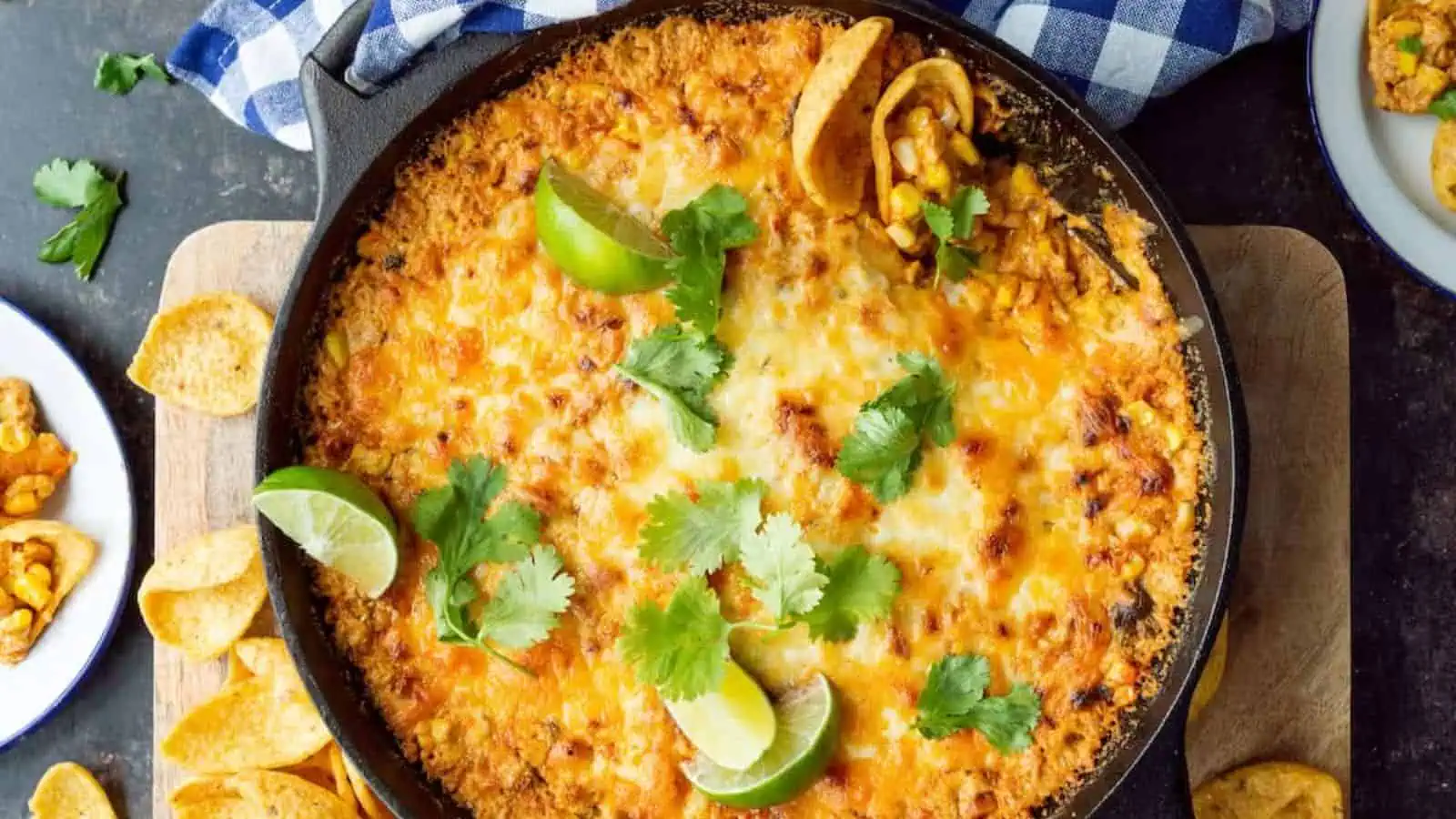 This dip pulls in all the flavors of elote with cream cheese, chili, and lime. It stays melty and rich while keeping its texture thanks to sweet corn kernels. Serve it hot with tortilla chips for scooping. It's one of the better crowd-pleasing appetizers for game night.