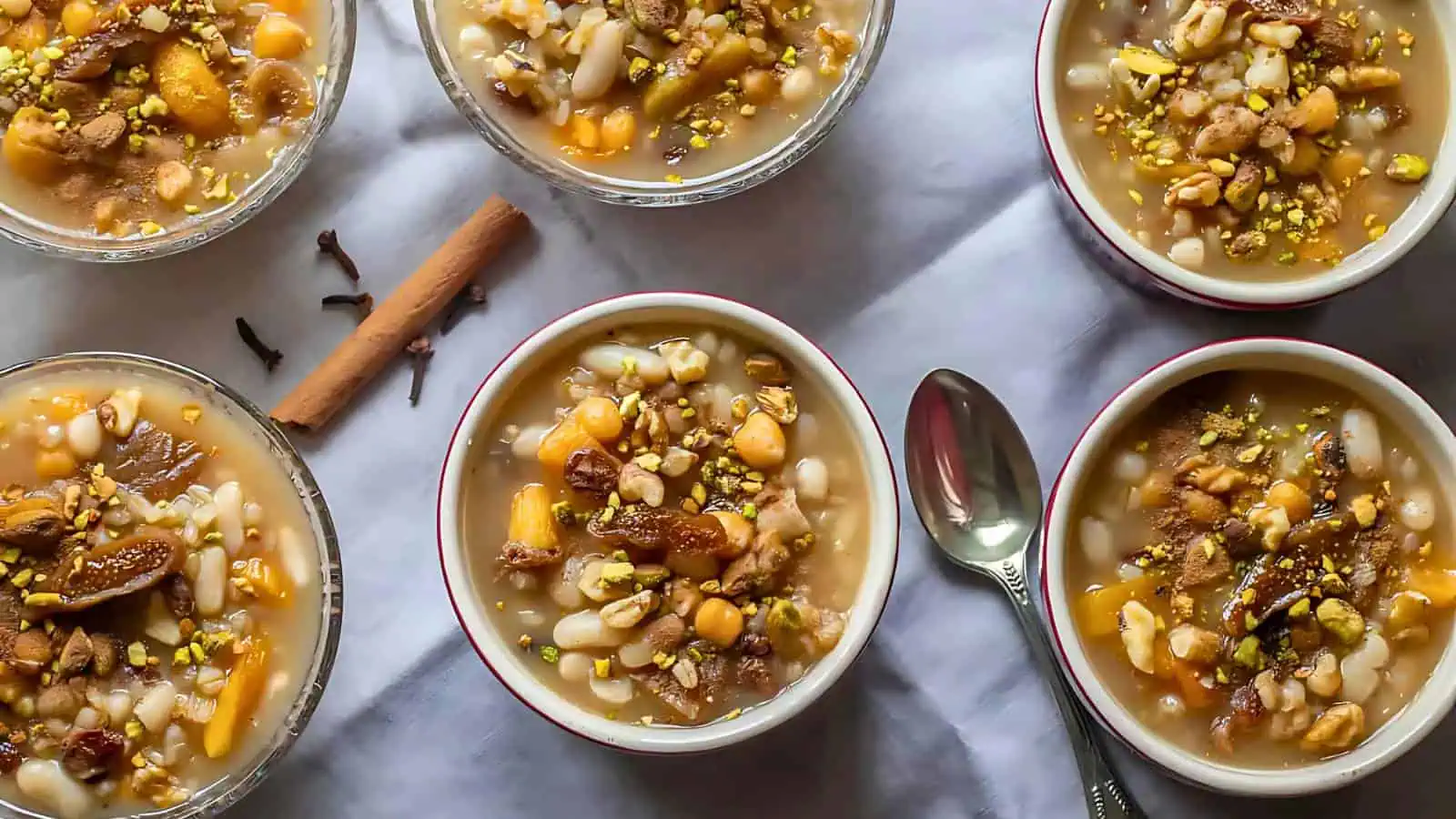 Ashure, or Noah’s Pudding, is a dairy-free dessert packed with grains, nuts, and dried fruit. It’s naturally sweetened and has a rich history behind it. A unique option when you want something different from the usual sweets.