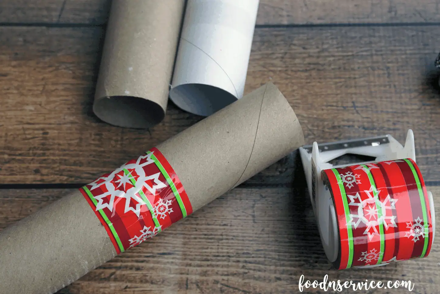 place pieces of tape in the middle of the ticket and join to the toilet paper rolls. Be sure to space them out a little bit.