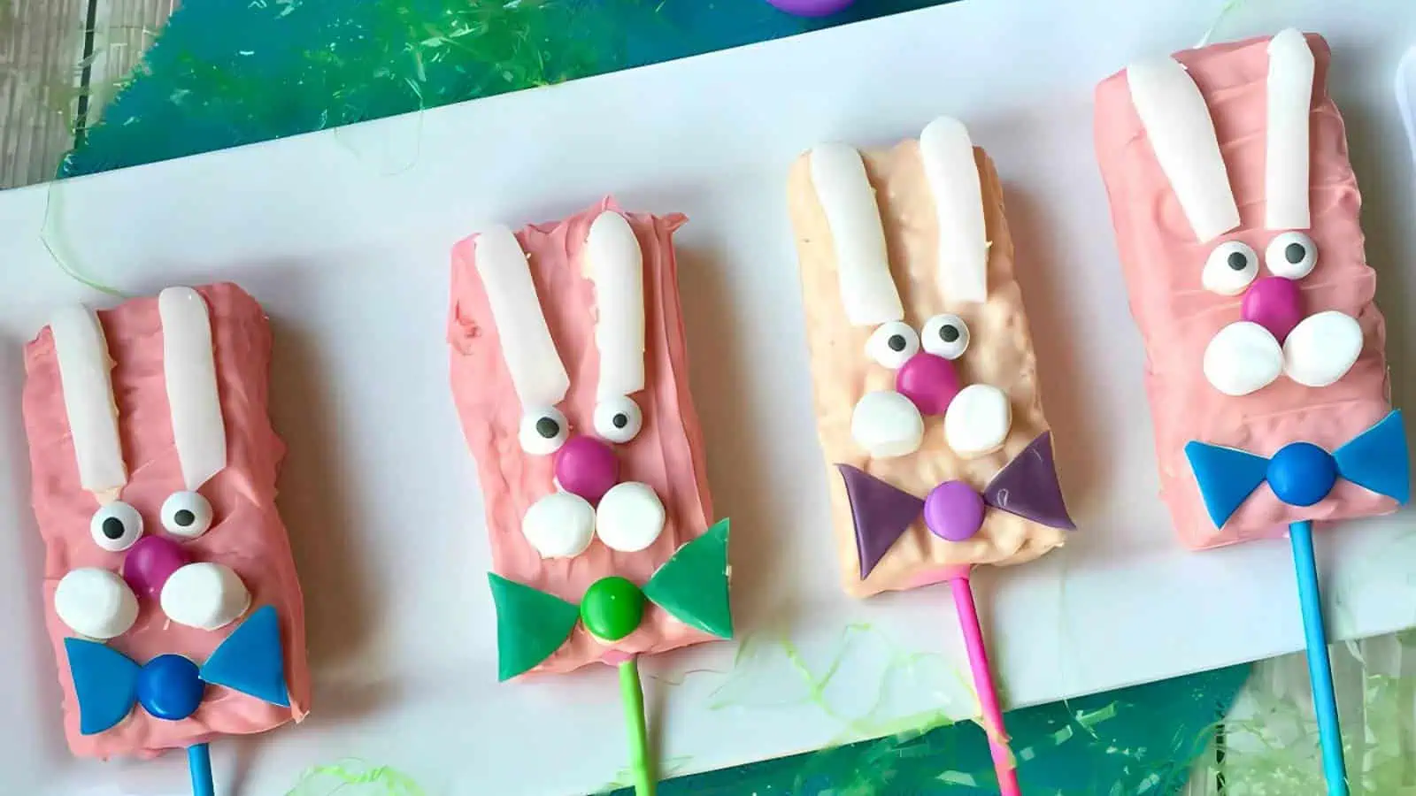 These bunny-shaped Rice Krispie treats are as fun to eat as they are to make! Served on a stick, theyโre a great addition to Easter bunny recipes and a perfect grab-and-go treat for kids and adults.