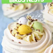 Easter meringue nests are cute, holiday-themed dessert ‘nests' made from meringue, which is sweetened egg whites beaten into a thick white mixture. Then, they're decorated with mini eggs to look like real eggs inside a nest.