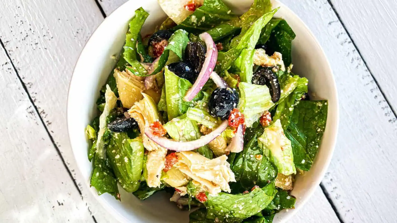 Everything you love about an Italian sub, but in salad form. Chopped veggies, olives, and cheese bring the crunch, while a zippy dressing ties it all together. Itโs quick, easy, and anything but boring.