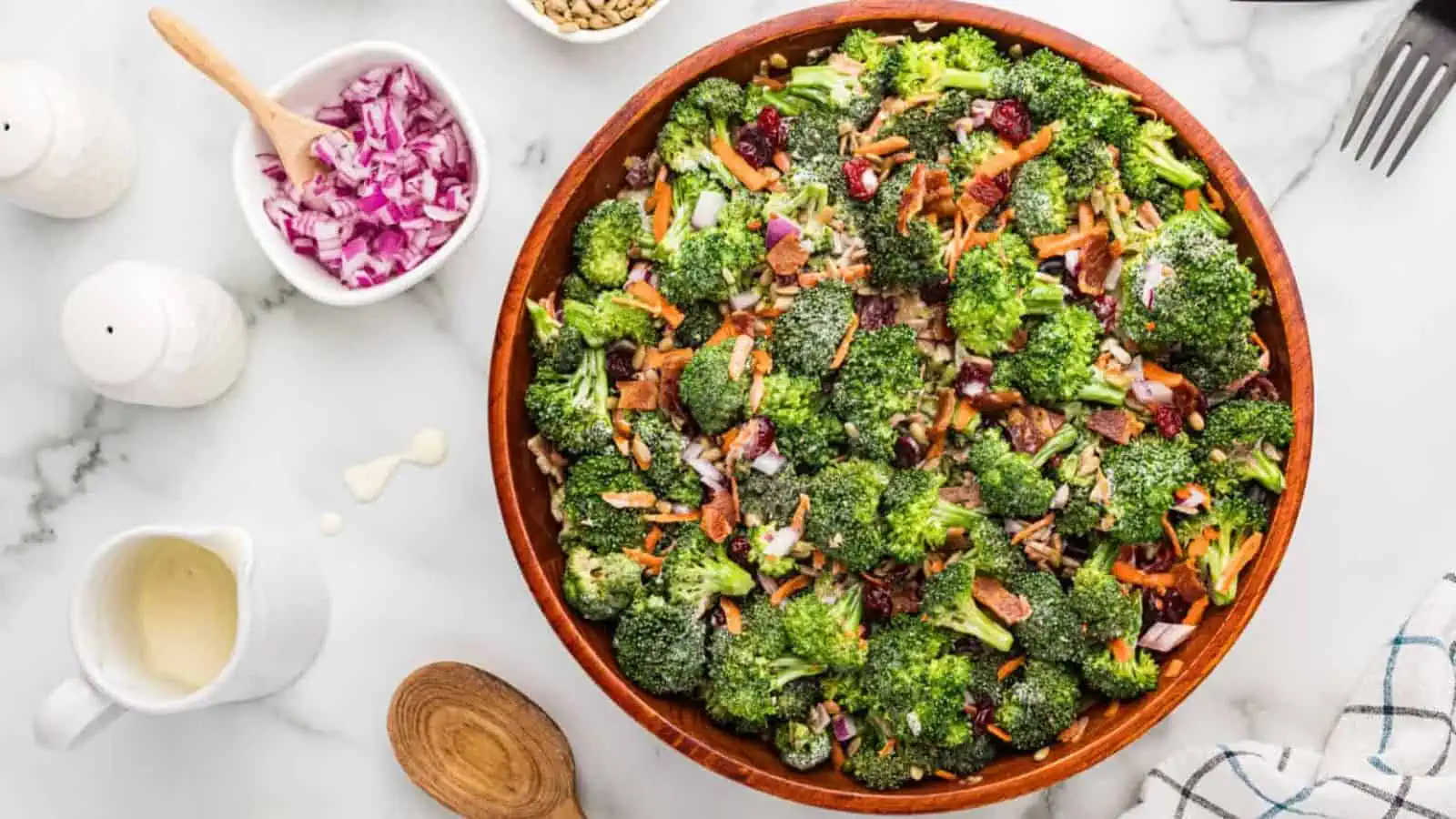 If youโre into texture, this oneโs got layers. Crunchy broccoli, crispy bacon, and sweet cranberries all hang out in a creamy dressing that keeps every bite interesting. Good luck making it last past lunchtime.