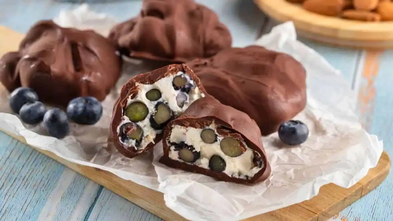 Chocolate Covered Yogurt Bites with Blueberries & Almonds