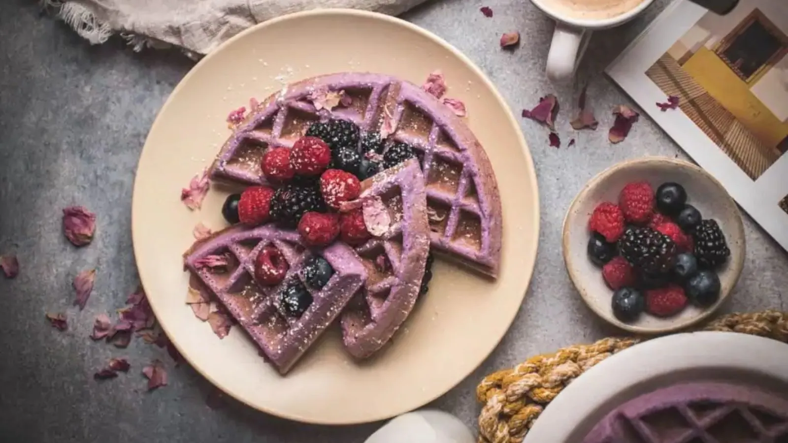 These waffles get their color and nutrients from beetroot powder, which blends easily into the batter. They’re lightly sweet and cook up with a crisp shell and tender inside. Serve with yogurt, fruit, or syrup depending on how you like breakfast. If you’re looking for fun waffle recipes with extra color, this one’s worth a try.